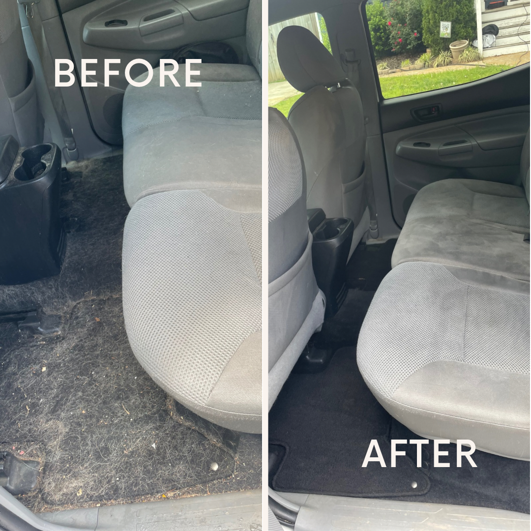 When detailing a vehicle, it’s incredibly important for us to know ahead of time if the owner has pet hair removal needs. Pet hair can be one of the most time-consuming and labor-intensive parts of a detail. Unlike regular dirt or debris, pet hair sticks to fabric, gets tangled in carpet fibers, and hides in every nook and cranny. Removing it isn’t as simple as a quick vacuum—it requires special tools and techniques. We use rubber brushes, pumice stones, pet hair vacuums, and lint rollers to lift hair from all surfaces. In some cases, we even need compressed air and fabric-safe pre-treatment sprays to loosen embedded fur. This process can add anywhere from 30 minutes to over an hour to the detail, depending on how severe the hair buildup is. It’s also physically demanding, often requiring repeated scrubbing and kneeling in tight spaces. Not only does it extend the job time, but it also impacts our daily schedule if we weren’t prepared for it. That’s why being notified ahead of time is essential—it allows us to allocate the right amount of time and bring all the necessary supplies. It also helps us give accurate estimates and avoid last-minute upcharges or delays. When customers communicate this need in advance, it ensures a smoother experience for both parties. Our goal is to return your car in pristine condition, free of odors, allergens, and all signs of pet hair. But that level of clean requires preparation and planning. A quick heads-up can make all the difference in the results we deliver. Your honesty helps us help you—and keeps your furry friend’s rides a little cleaner, too. Let us help you today by contacting us here!