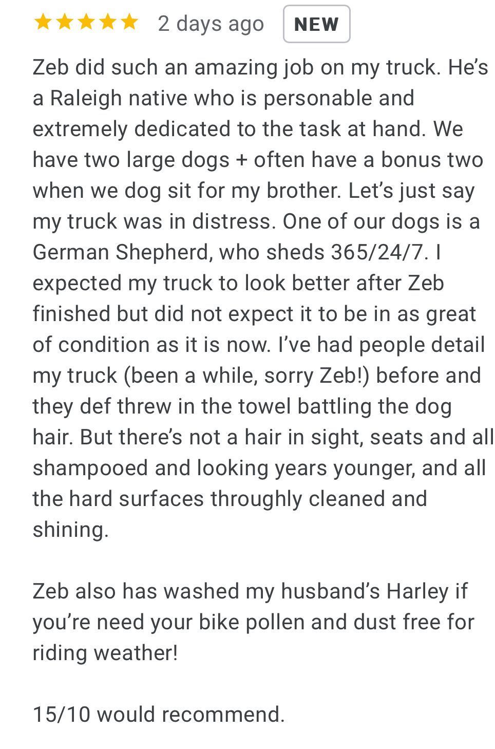 They also boost our visibility on Google, helping more people discover Clean Z’s when searching for mobile detailing nearby. Higher ratings can influence someone to choose us over the competition. It’s like word-of-mouth, but way more powerful. Plus, honest reviews help us grow and improve—we’re always listening. When happy customers share their experiences, it fuels our passion and helps us stand out. We know your time is valuable, and every review is deeply appreciated. So if we’ve detailed your ride and you loved the results, let the world know! Your voice can help drive our small business forward.